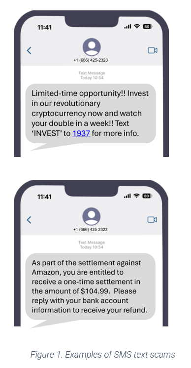 Phishing/smishing – Phishing (emails) and smishing (SMS/texts) attempt to trick the recipient into providing sensitive information or downloading malware — i.e., malicious software — by clicking a link. Phishing emails are often sent to multiple email addresses at an organization to increase the chance someone will fall for the trick.